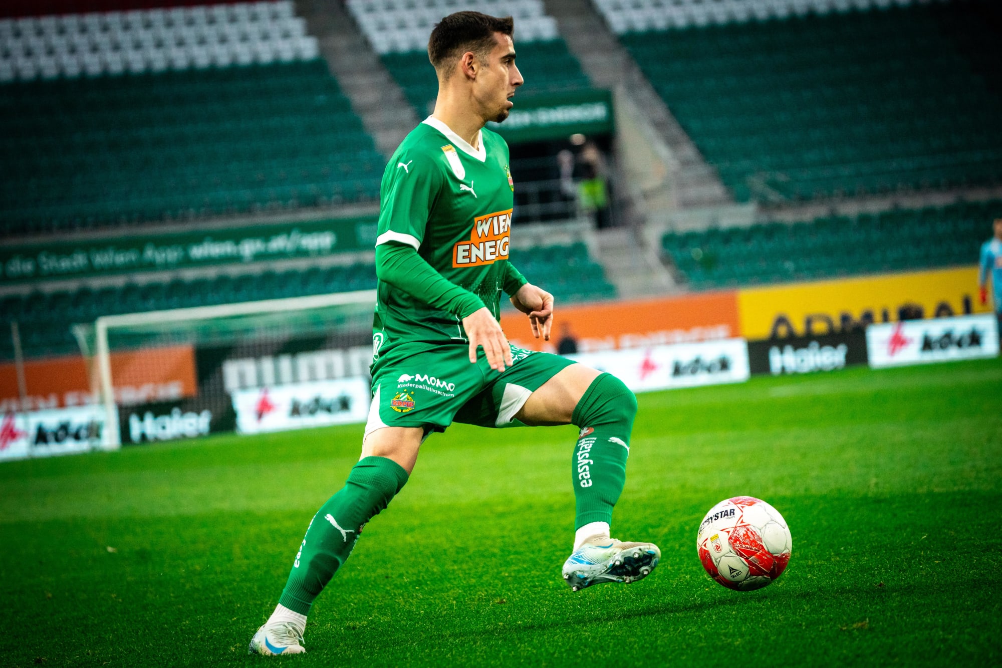 Seit dem gestrigen Start in die Meistergruppe der ADMIRAL Bundesliga gibt es nun auch eine spannende Neuerung auf den Trikothosen der Rapidler. So erhält das MOMO Kinderpalliativzentrum eine kostenfreie Werbefläche und ist ab sofort auf den Trikothosen von Kapitän Matthias Seidl & Co. des SK Rapid vertreten, auf der Rückseite bekommt die Eigenmarke „Rapid leben“ einen Platz. So wird die freie Fläche genutzt, um auf wichtige soziale Einrichtungen und Initiativen aufmerksam zu machen, denn das Tageszentrum „MOMO ZeitRaum“, welches schwerstkranken Kindern und deren Angehörigen Halt gibt, ist zu 100 Prozent spendenfinanziert und für die Familien kostenfrei.