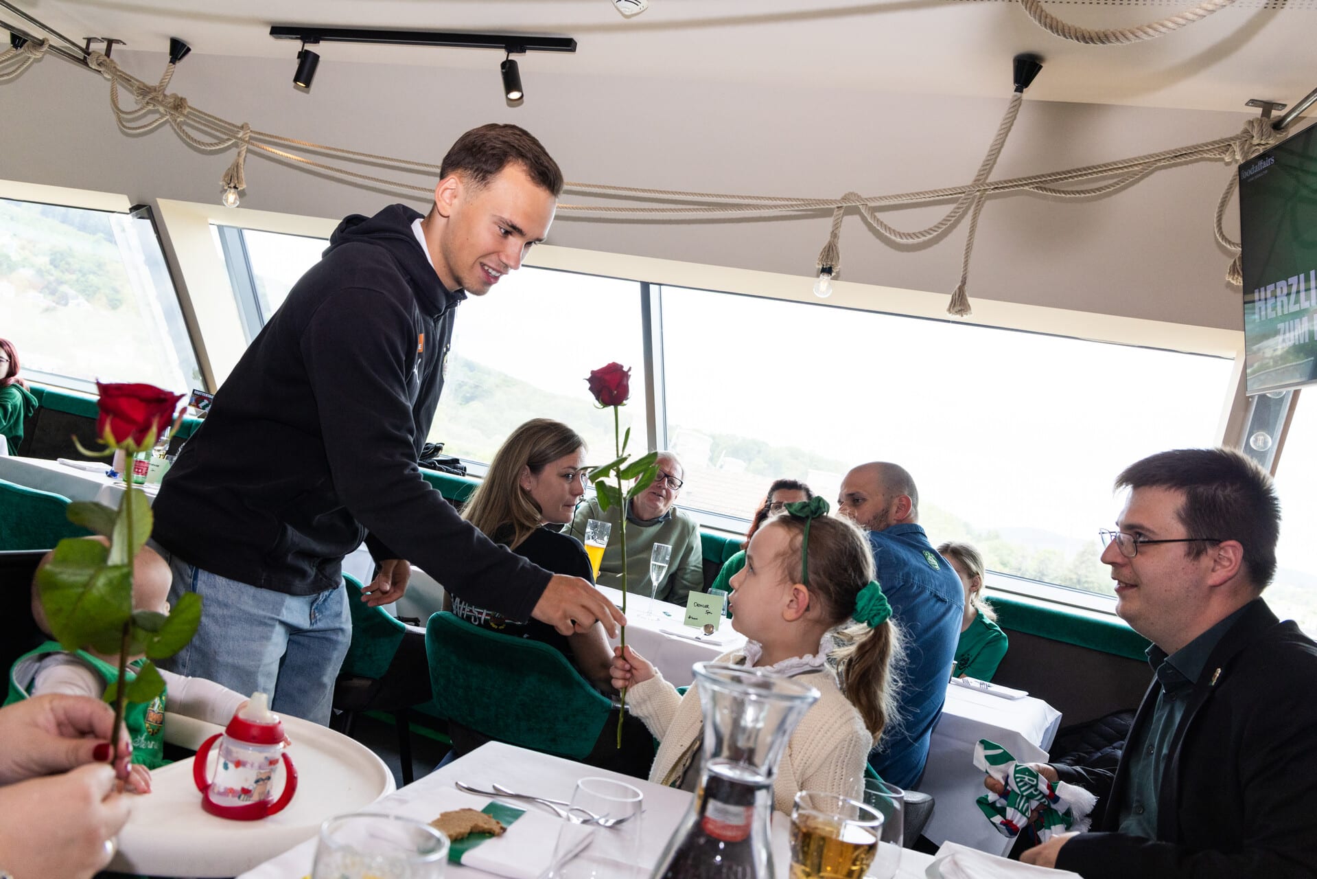 Rund 200 Rapid-Fans kamen in die Rekordmeister Bar nach Hütteldorf, um sich von kulinarischen Schmankerln vom Frühstück über das Mittagessen bis hin zum Dessert verwöhnen zu lassen und darüber hinaus auch noch einiges zu erleben. So war neben einem Live-DJ, einer Fotobox, einem eigenen Kids Corner, exklusiven Einblicken in das Rapideum auch Nikolaus Wurmbrand zu Gast. Unser Youngster nahm sich Zeit, um von Tisch zu Tisch zu gehen, einige Gespräche zu führen sowie zahlreiche Foto- und Autogrammwünsche zu erfüllen.
