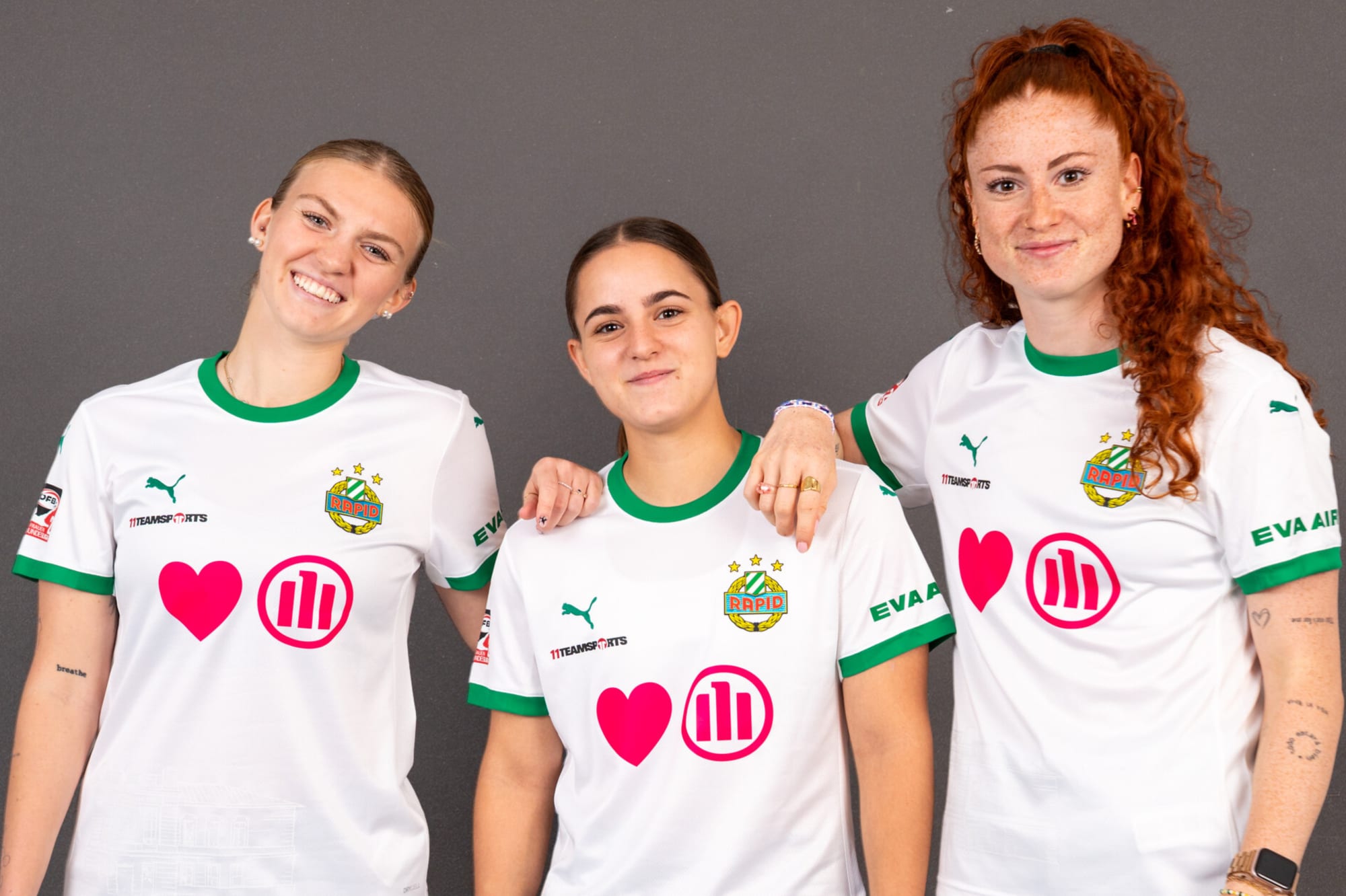 Auch gegen die SG SK Austria Klagenfurt laufen die Hütteldorferinnen in den weißen Sondertrikots im Zeichen des Pink Octobers auf. © SK Rapid | Widner
