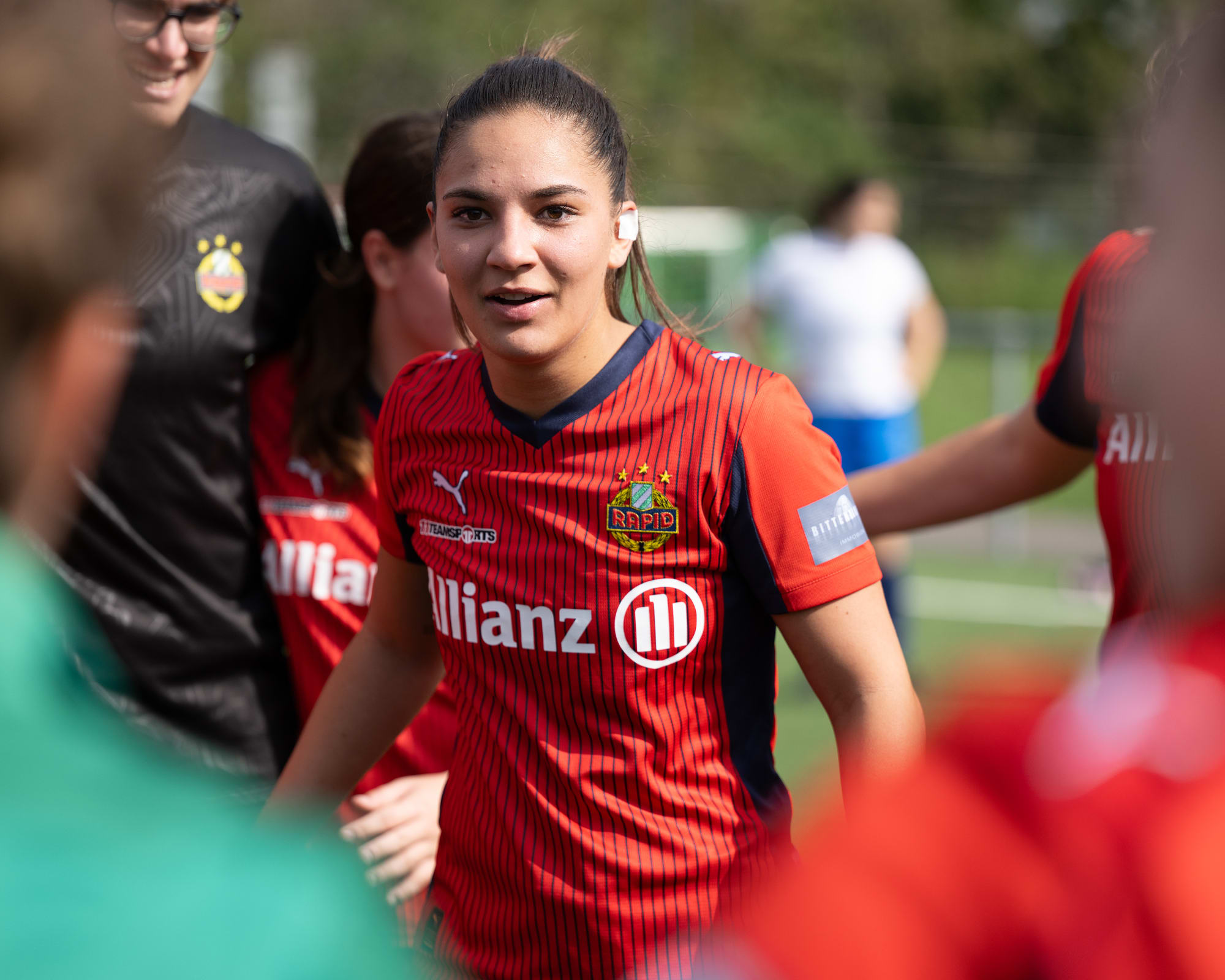 Aber zum Spiel: Die Rapidlerinnen unter der Leitung von Co-Trainerin Nicole Bauer starteten gut in die Partie und dominierten ab Minute 1. Trotz zahlreicher Möglichkeiten, ließ der Führungstreffer aber auf sich warten - noch ließ die Chancenauswertung zu wünschen übrig. Nach 40 Minuten absoluter Überlegenheit ging der Ball aber endlich ins Netz. Natascha Wurm traf zum wichtigen 1:0 (40.).