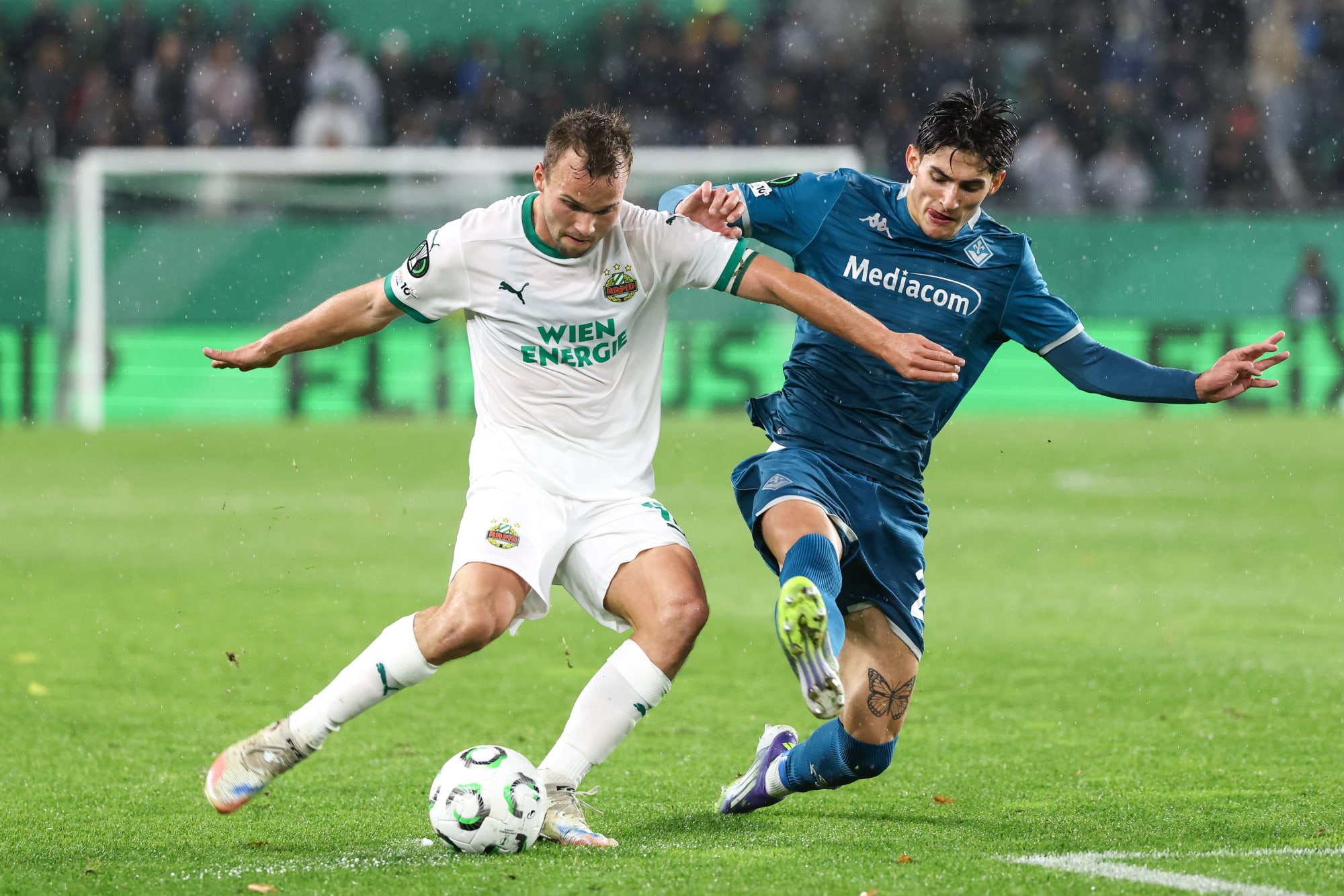 Heute war es endlich so weit: Die Hymne der UEFA Conference League schallte durchs prallgefüllte Weststadion, der grün-weiß-schwarze Ball rollte über den heiligen Rasen – das erste Heimspiel der Ligaphase ging über die Bühne! Zu Gast war mit der ACF Fiorentina ein „alter Bekannter“ mit italienischer Klasse. Cheftrainer Peter Stöger entschied sich für eine etwas andere Aufstellung (siehe Ende des Beitrags) – schlussendlich musste unsere Mannschaft eine deutliche Niederlage einstecken.
