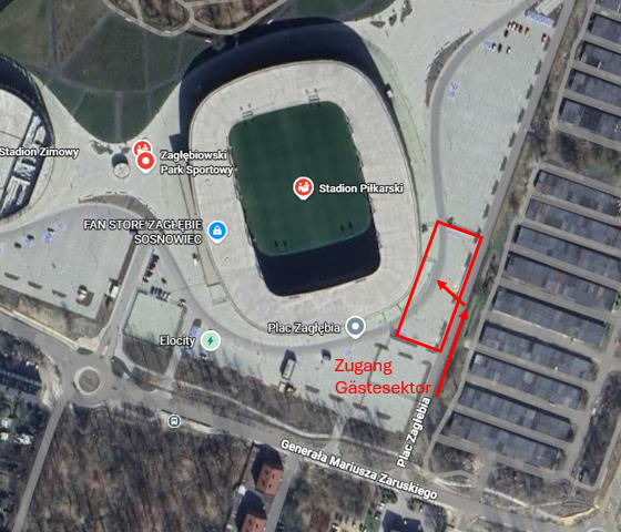 Nachfolgend findet ihr nun einige, sehr wichtige Fan-Informationen zum Spiel im Zagłębiowski Park Sportowy in Sosnowiec: