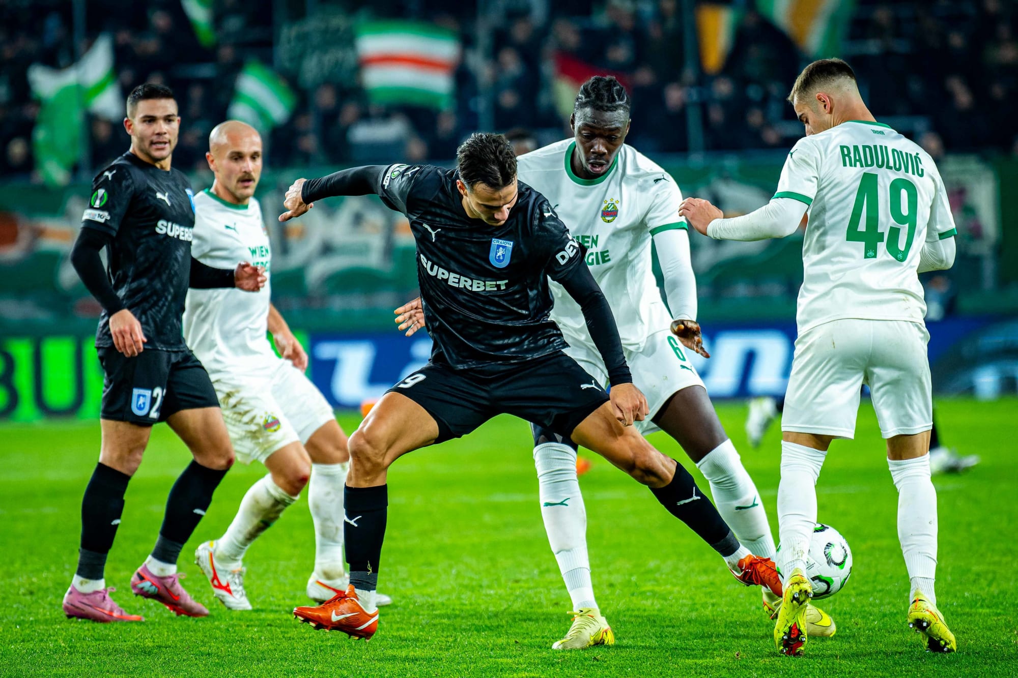 Die Flutlichter erhellten das Weststadion, der offizielle Matchball der UEFA Conference League rollte über den heiligen Rasen. Alles war angerichtet für Spieltag Nummer 3 mit dem rumänischen Gast Universitatea Craiova. Im Vergleich zum letzten Spiel gab es einige Änderungen in der ersten Elf: Jonas Auer, Lukas Grgić, Tobias Gulliksen und Andrija Radulović starteten diesmal von Beginn an. Nach dem ergebnistechnisch bescheidenen Start in die Ligaphase wollte unsere Mannschaft heute endlich punkten, doch das Vorhaben ging nicht auf: Am Ende musste die Elf von Cheftrainer Peter Stöger die dritte Niederlage in der Ligaphase einstecken.