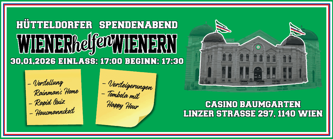 Update (8.1.2026): Am 30. Jänner findet im Casino Baumgarten der diesjährige Hütteldorfer Spendenabend statt. Seid mit dabei und unterstützt diese großartige Spendenaktion!