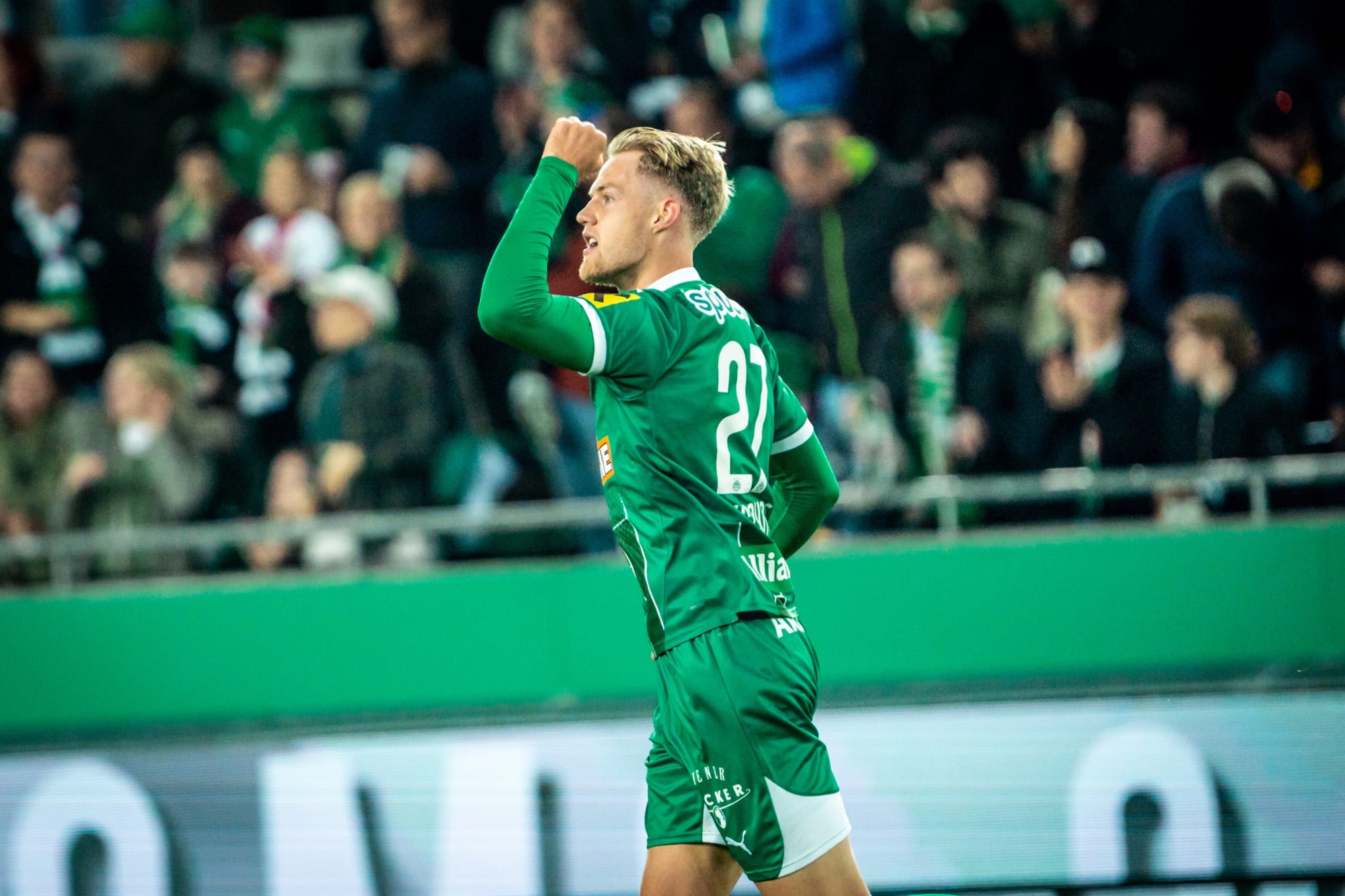 Noah Bischof beim Jubel über sein erstes und einziges Pflichtspieltor für unsere Profimannschaft. © SK Rapid|Widner