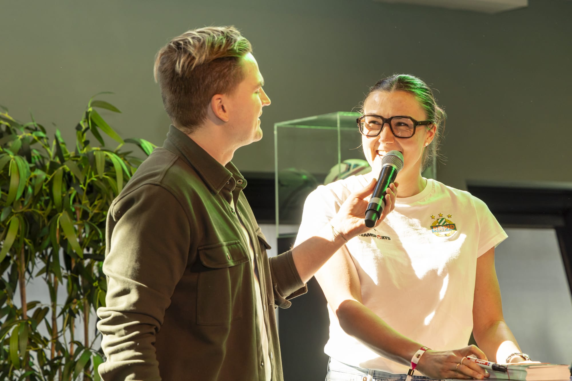 Von österlichen Köstlichkeiten über gefärbten Ostereiern bis hin zur Ostereier-Suche war für Jung und Alt etwas dabei. Darüber hinaus standen die Spieler*innen Claudy Mbuyi und Lisa Rammel, die gleichzeitig die Werbetrommel für das Heimspiel der SK Rapid Frauen am 16. Mai im Allianz Stadion rührte (jetzt gleich Tickets sichern), für Foto- und Autogrammwünsche zur Verfügung.