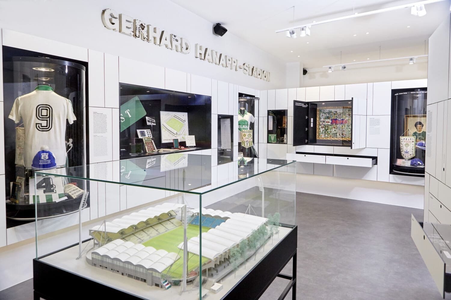 The Rapideum (club museum) can also be visited without prior booking - Opening hours: Mon-Sat 11am-6pm, on match days on Sundays and public holidays from three hours before kick-off - tickets are available at the fan corner at the stadium entrance!